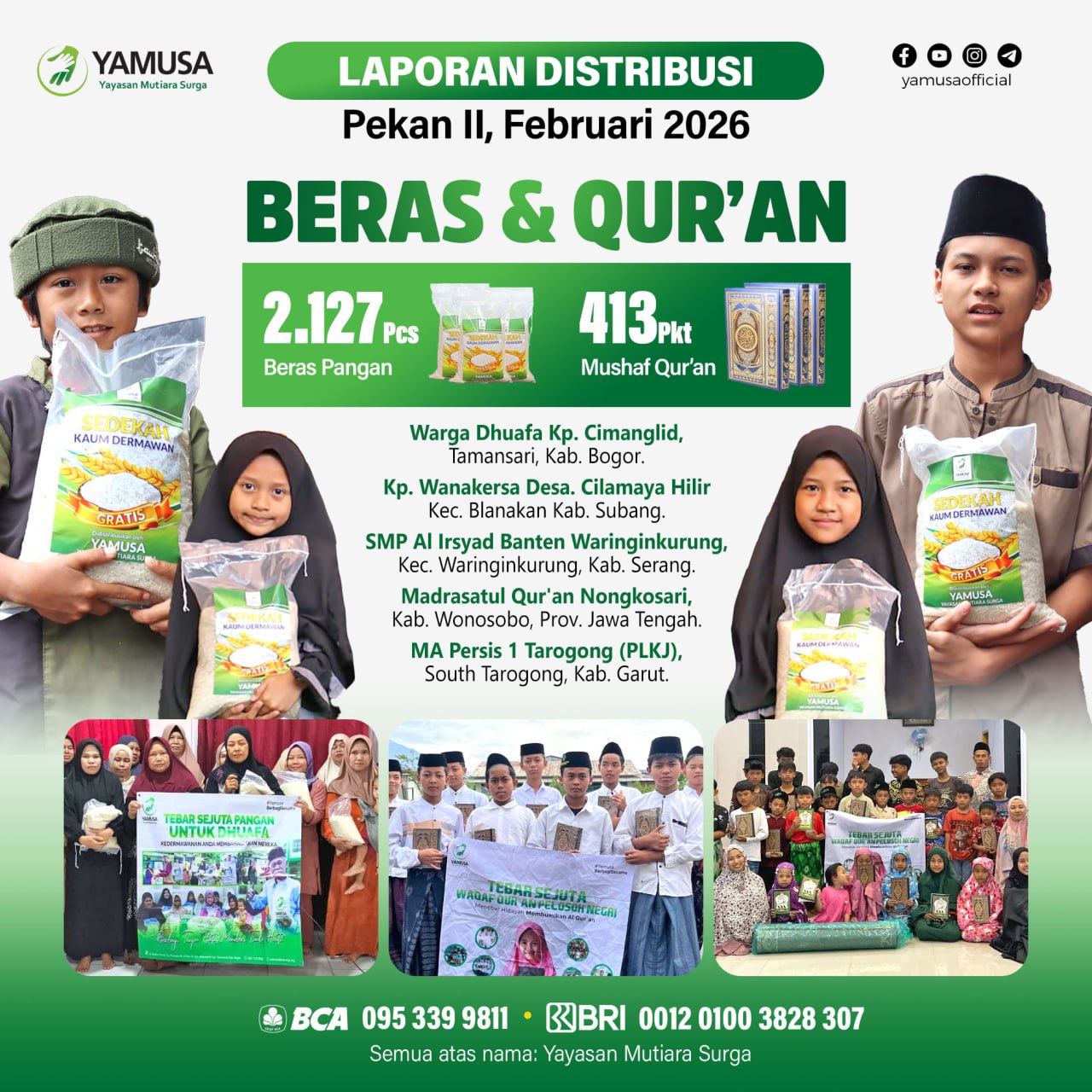 YamusaBerbagiSesama .Alhamdullilah, berikut laporan distribusi program Yamusa di pekan kedua bulan Februari 2026 dengan total …