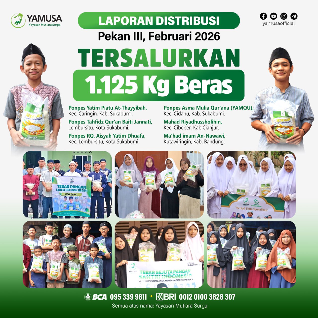 YamusaBerbagiSesama .Alhamdullilah, berikut laporan distribusi program Yamusa di pekan ketiga bulan Februari 2026 dengan total …