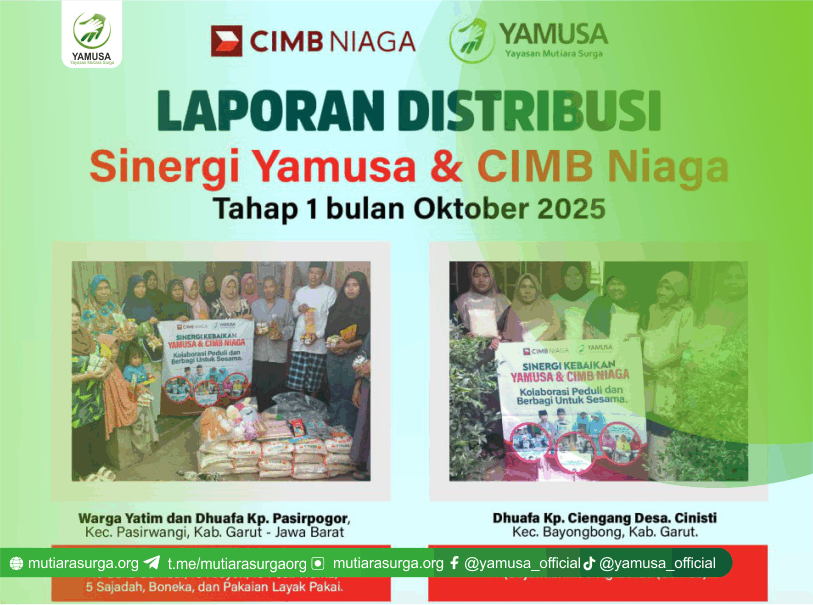Alhamdulillah, pada bulan Oktober 2025 ini, Yayasan Mutiara Surga (Yamusa) bersama CIMB Niaga kembali menyalurkan bantuan tahap kedua untuk dua lembaga pendidikan di Sukabumi. Kegiatan ini menjadi bukti nyata bahwa kolaborasi dan kepedulian bisa membawa manfaat besar bagi banyak orang. Lokasi pertama adalah Pondok Alam Yatim Dhuafa Baiti Jannati di Cikundul, Sukabumi.Di pondok ini, para […]