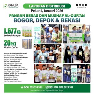 • Jumlah Bantuan: 288 Kg Beras / 6 Karung & 100 Mushaf Al-Qur’an