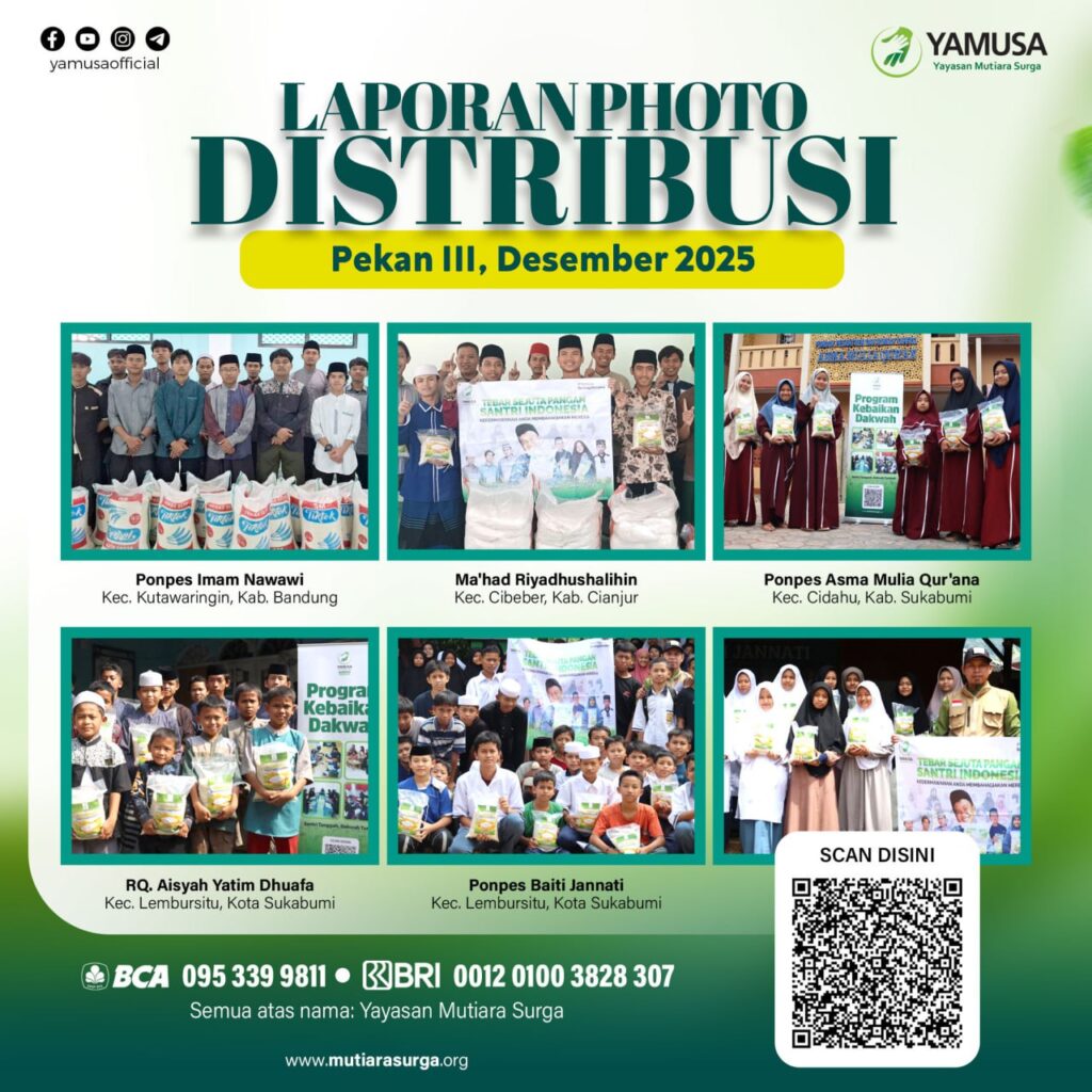 Alhamdullilah, berikut laporan distribusi program Yamusa di pekan ketiga bulan Desember 2025 dengan total bantuan 1.596 Kg beras serta 96 Paket buka puasa sunnah santri :